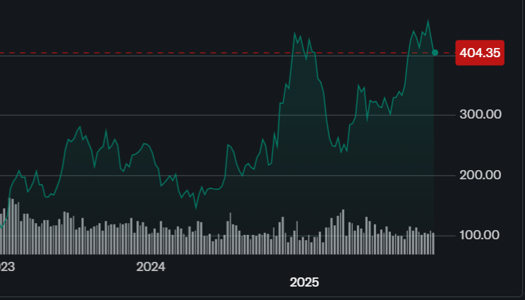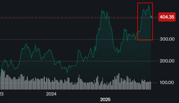 $250~400까지 급등한 구간이고