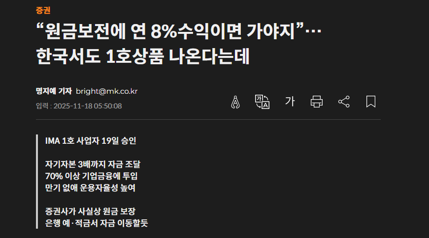 IMA는 종투사(증권사)가 만기에 원금을 보장해준다