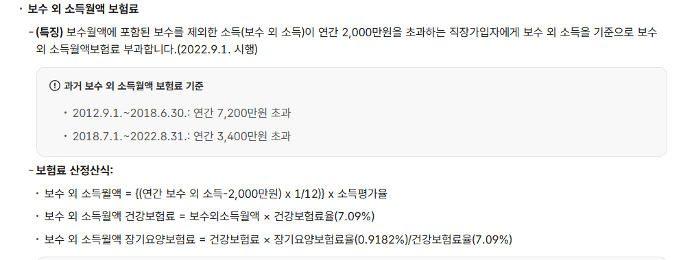 | 직장가입자 | 연간 보수 외 소득(이자·배당·임대 등) 2,000만 원 초과 | 초과분을 기준으로 ‘소득월액 보험료’ 부과 |